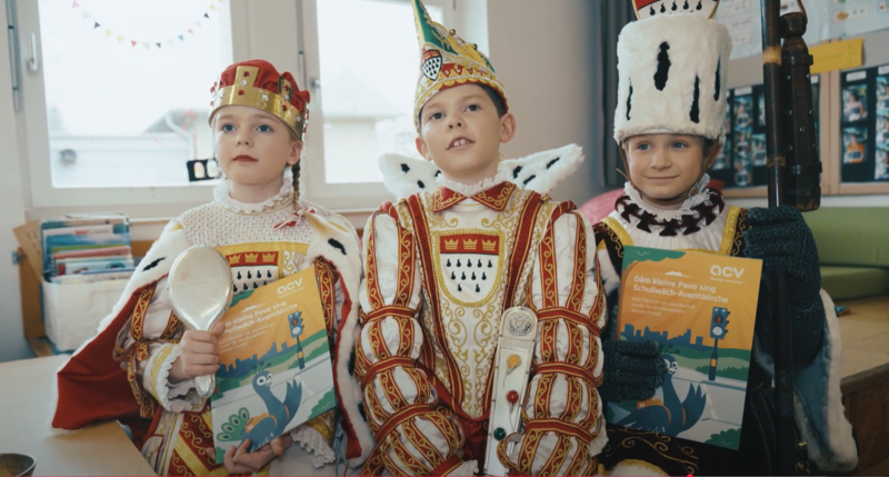 Die Sonderedition der ACV Verkehrsfibel mit dem Titel „Däm kleine Pavo sing Schullwäch-Aventöörche“ setzt sich für Kölner Brauchtum ein und vermittelt Grundschulkindern spielerisch wichtige Verkehrsregeln auf Kölsch. Zudem gibt das Heft Eltern wertvolle Tipps, um die Verkehrskompetenz ihrer Kinder zu fördern.