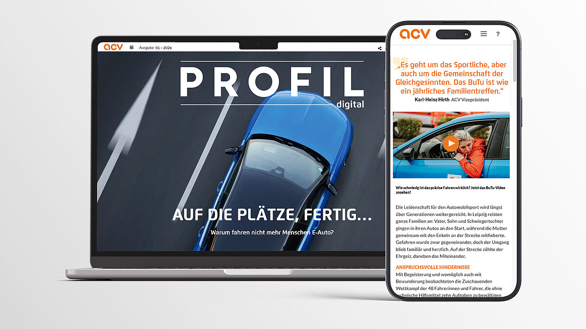 Der ACV stellt die interaktiven Online-Versionen seines Mitgliedermagazins kostenlos und mit zusätzlichen Inhalten auf seiner Website zur Verfügung: PROFIL digital – Magazin des ACV.